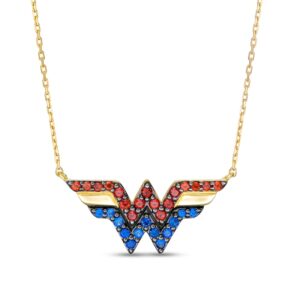 Garnet and Blue Sapphire Symbol Necklace in 10K Gold