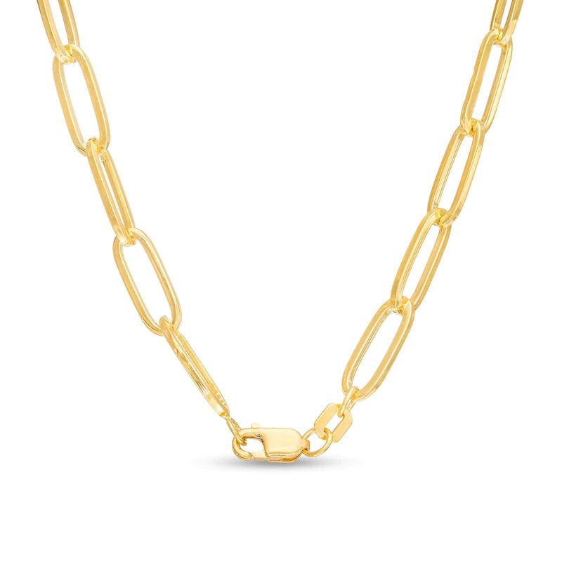 - This 18.25-inch paperclip chain necklace secures with a lobster claw clasp.