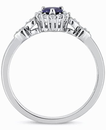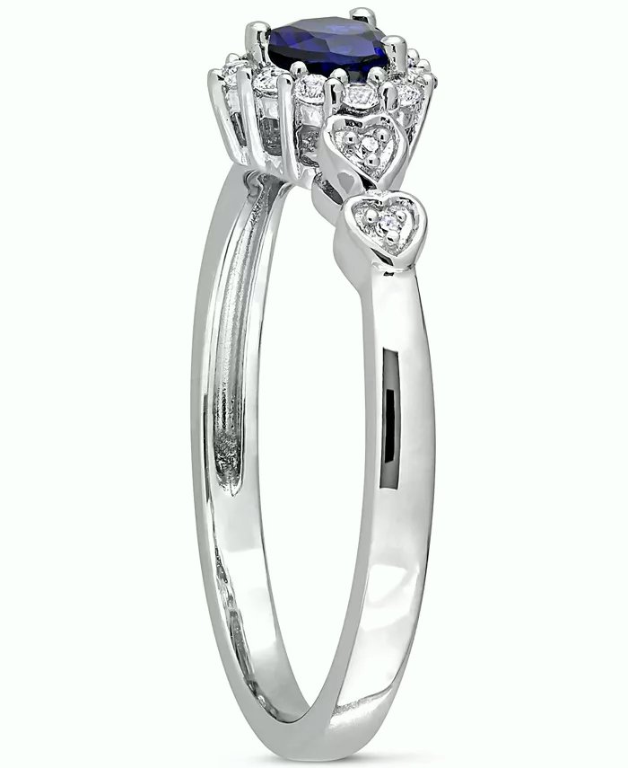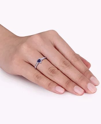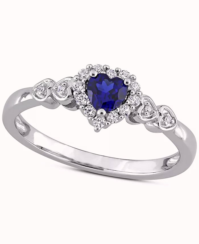Blue Sapphire (1/4 ct. t.w.), White Sapphire (1/8 ct. t.w.), & Diamond Accent Heart Ring in Sterling Silver